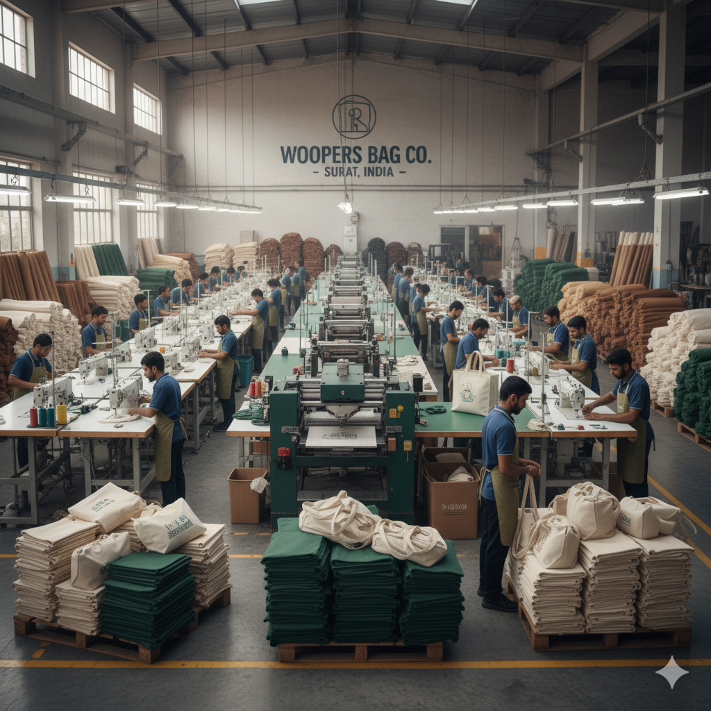 Woopers Bag Company is a Surat-based manufacturer and supplier of high-quality eco-friendly cloth carry bags. Started in 2024, we focus on providing durable, reusable and affordable cloth bags for retailers, wholesalers, resellers, corporate clients and businesses across India.